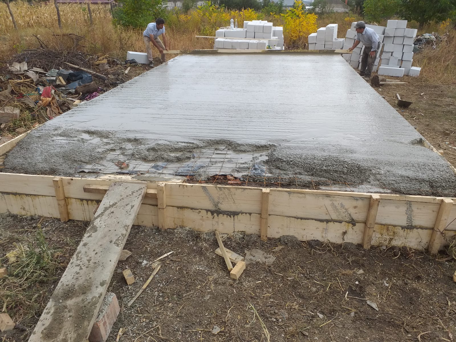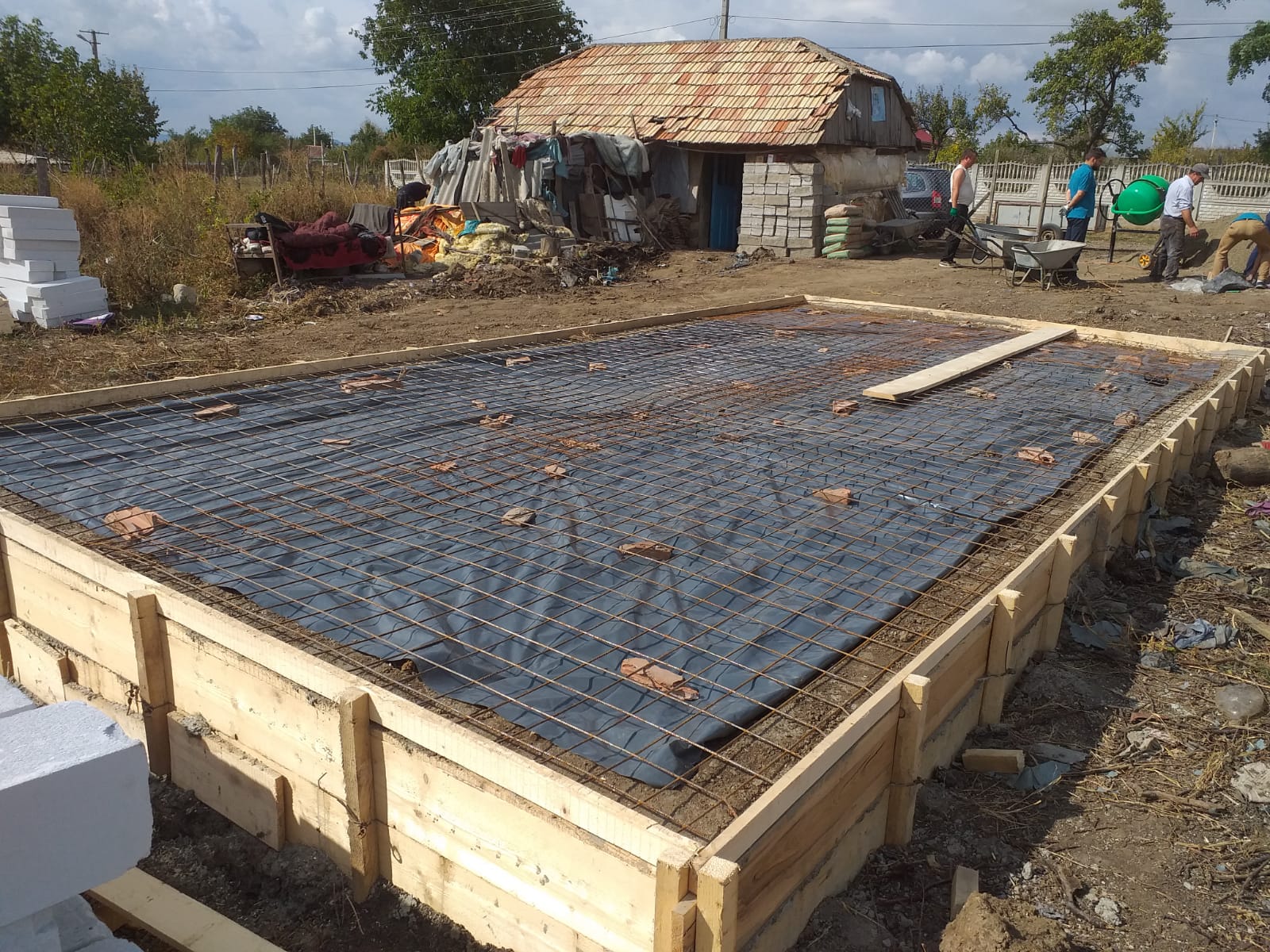 UPDATE 26.09.2019 – MARE ESTE DUMNEZEU! Am încheiat cu ajutorul lui Dumnezeu încă o nouă zi de șantier. Astăzi s-a decofrat pe interiorul temeliei, s-a turnat pământ pentru umplutura temeliei, s-a tasat pământul, s-a așezat plasa de armătura pentru placa si mai apoi s-a turnat beton, finalizandu-se temelia casei. Părintele Andrei Florariu are o echipă fantastică, cu toţii oameni minunaţi…