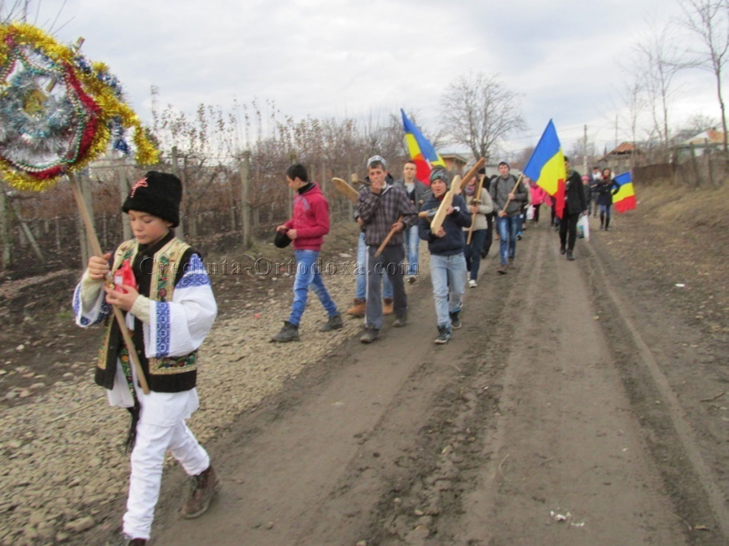În ziua de Crăciun, după amiază, am format un grup de tineri dornici de a face fapte bune, şi încărcaţi cu sacoşele cu daruri, cu toace, drapelul României (căci învăţăm să fim patrioţi) am plecat la colindat prin parohie la bătrâniii şi familiile beneficiare.