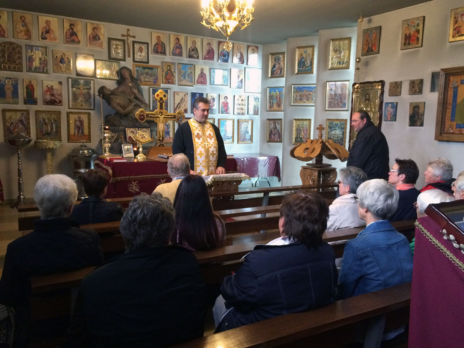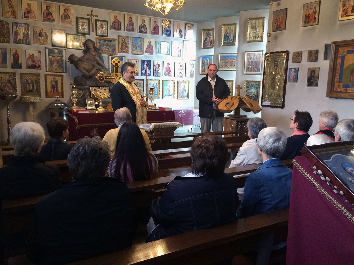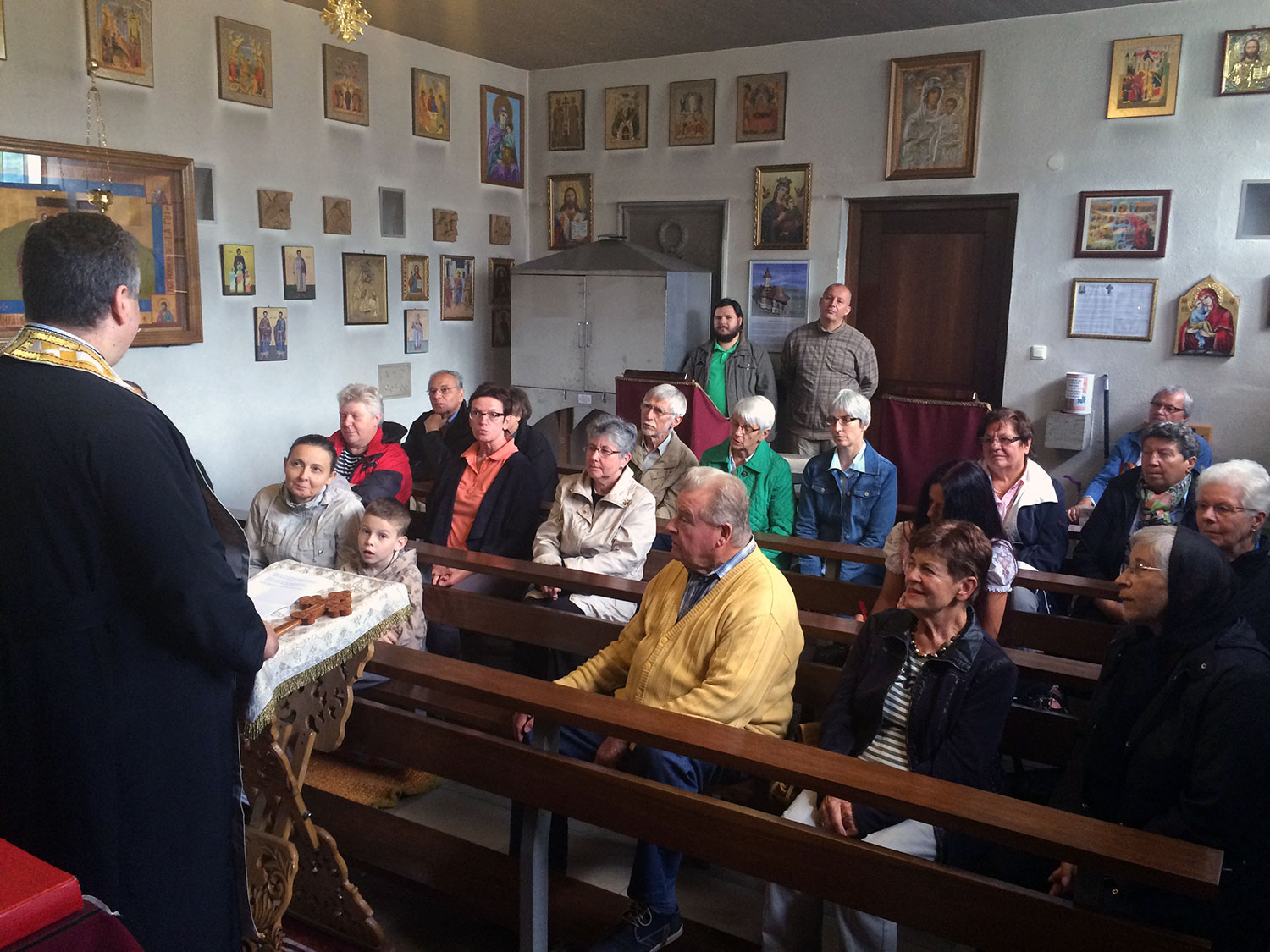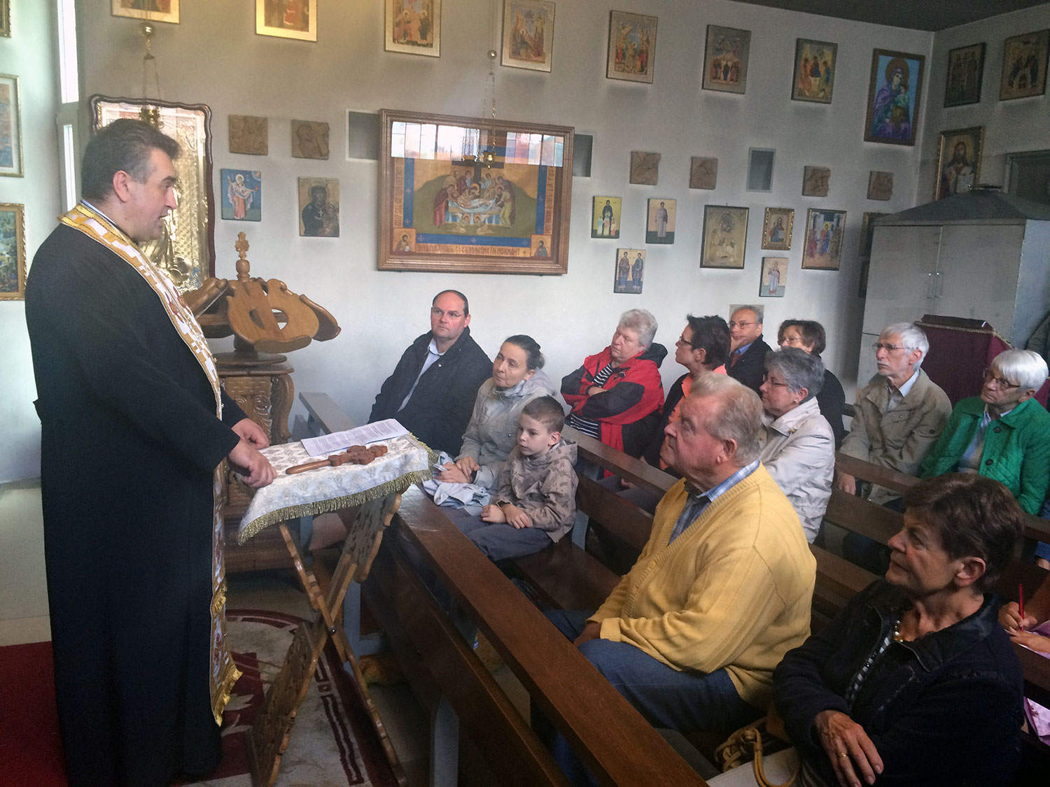 Interessierte bekamen eine Einführung in die Ikonographie in der Kirche und erfuhren etwas über die Grundlagen des rumänisch-orthodoxen Glaubens, die Sakramente, die Gemeinsamkeiten und Unterschiede im Vergleich zur katholischen Kirche sowie über Märtyrer und deren Reliquien.